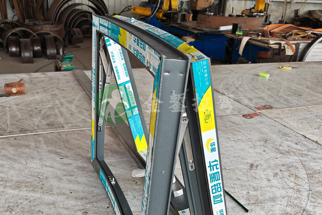 工艺流程:先做模具,然后制作精细化垫铁,加工时保护材料外表防止划伤。弯曲成型后进行弧度精准核验